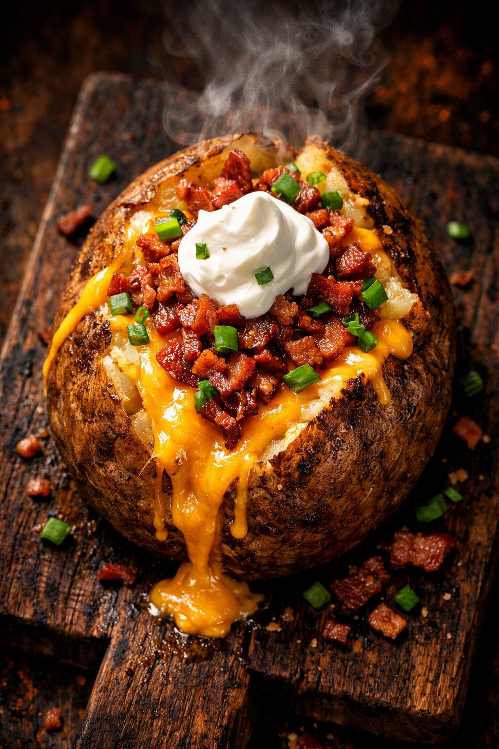 BBQ Brisket Loaded Potato with smoked meat and cheese